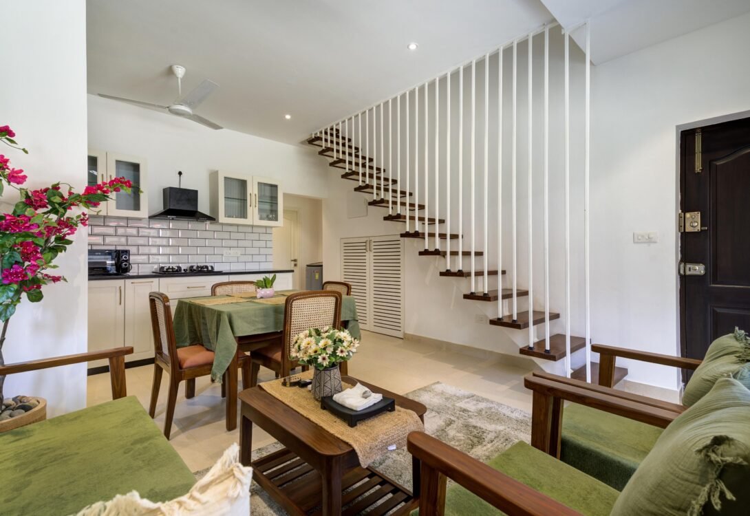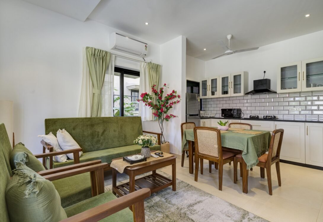 This private villa in Goa with swimming pool is perfect for guests who prefer peaceful surroundings, clean design, and functional spaces that feel easy to live in.